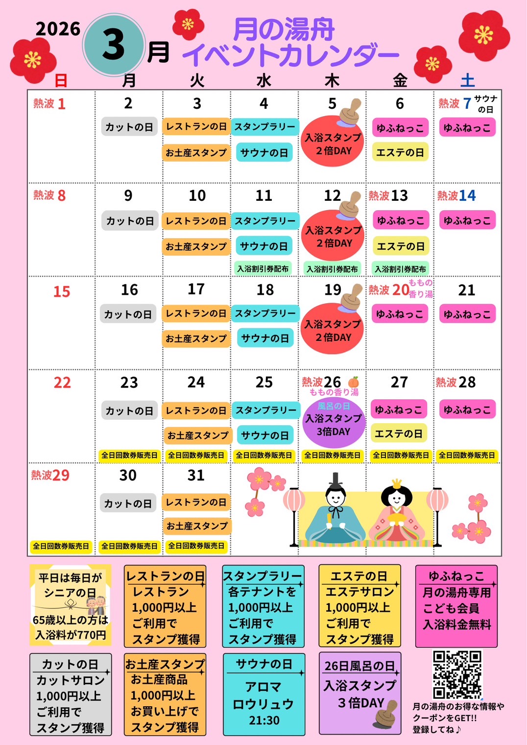 イベント 全60件 2026.01.12 イベント 月の湯舟からの謎解き第3弾! 月の湯舟 2026.01.11 イベント 熱波イベント1月2026年 サウナ 2026.01.11 イベント ゆふねっこ登録無料 イベント 月の湯舟 2026.01.11 イベント 26日「風呂の日」イベント風呂 月の湯舟 2026.01.11 イベント 【初来館】dounoura food truck tokushima キッチンカー 2026.01.04 イベント 入浴割引券プレゼントウィーク 月の湯舟 2025.12.30 イベント お正月の振舞いイベント 月の湯舟 2025.12.26 イベント 1月 イベントカレンダー 2026年 月の湯舟 2025.12.23 イベント 【レストラン】新春限定メニュー【数量限定】 レストラン 1 2 3