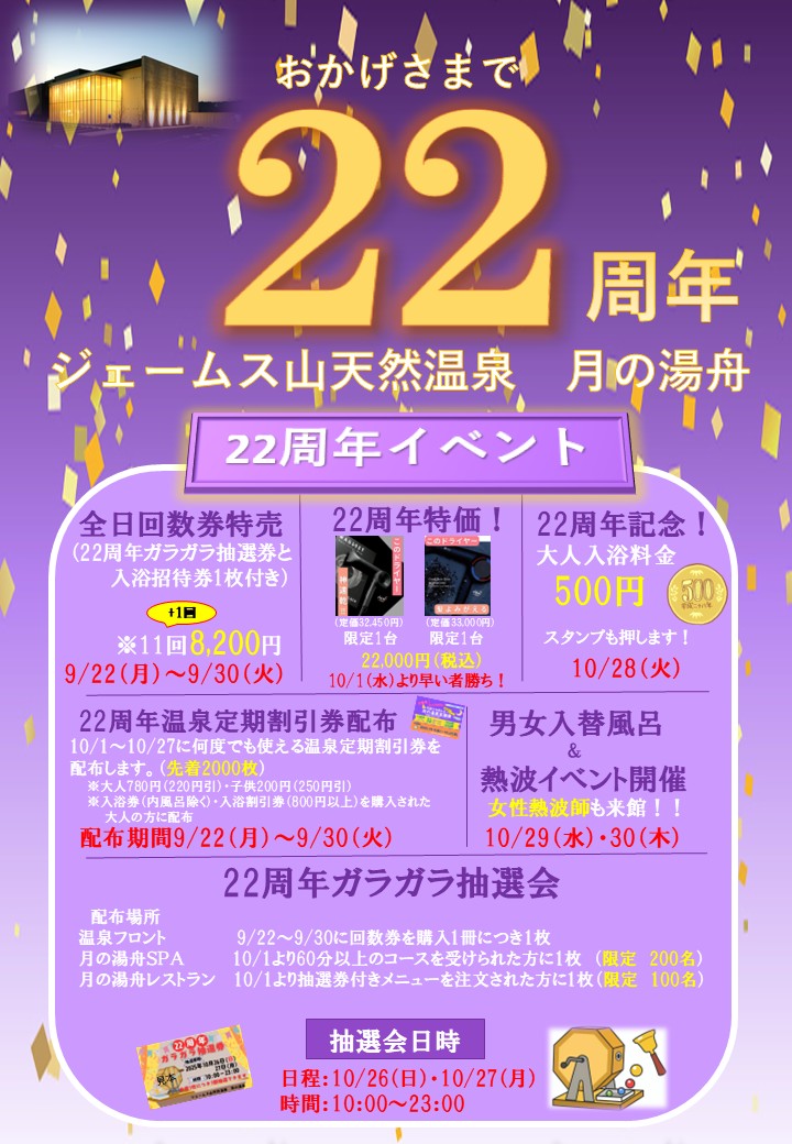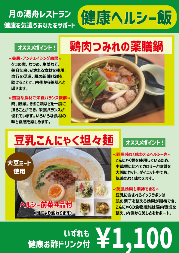 レストラン トピックス 2025.10.04 イベント 10月10日は「銭湯の日」♪ レストラン 2025.09.29 イベント 月の湯舟 22周年記念 特別イベント レストラン 2025.09.20 お得情報 レストラン 秋の味覚フェア レストラン 2025.09.19 お得情報 レストラン 健康ヘルシー飯 レストラン トピックス一覧 営業時間 営業時間 全日 11:30~22:00 ※ラストオーダー21:30 メニュー一覧 月の湯舟御膳 1,330円(税込) 玉ねぎ丸ごとカレー 920円(税込) ちょい飲みSET 1,100円(税込) メニュー一覧(PDF)